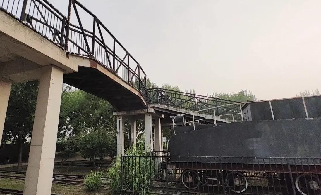 再往前来到永华道附近的老天桥公园游览。该公园于2015年新建, 以复原廊坊火车站天桥为中心,复建了老站房、水塔、老槐树等景观。