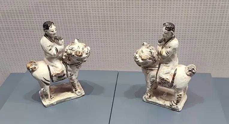 本人拍摄的馆藏文物白釉黑彩人物骑狮烛台