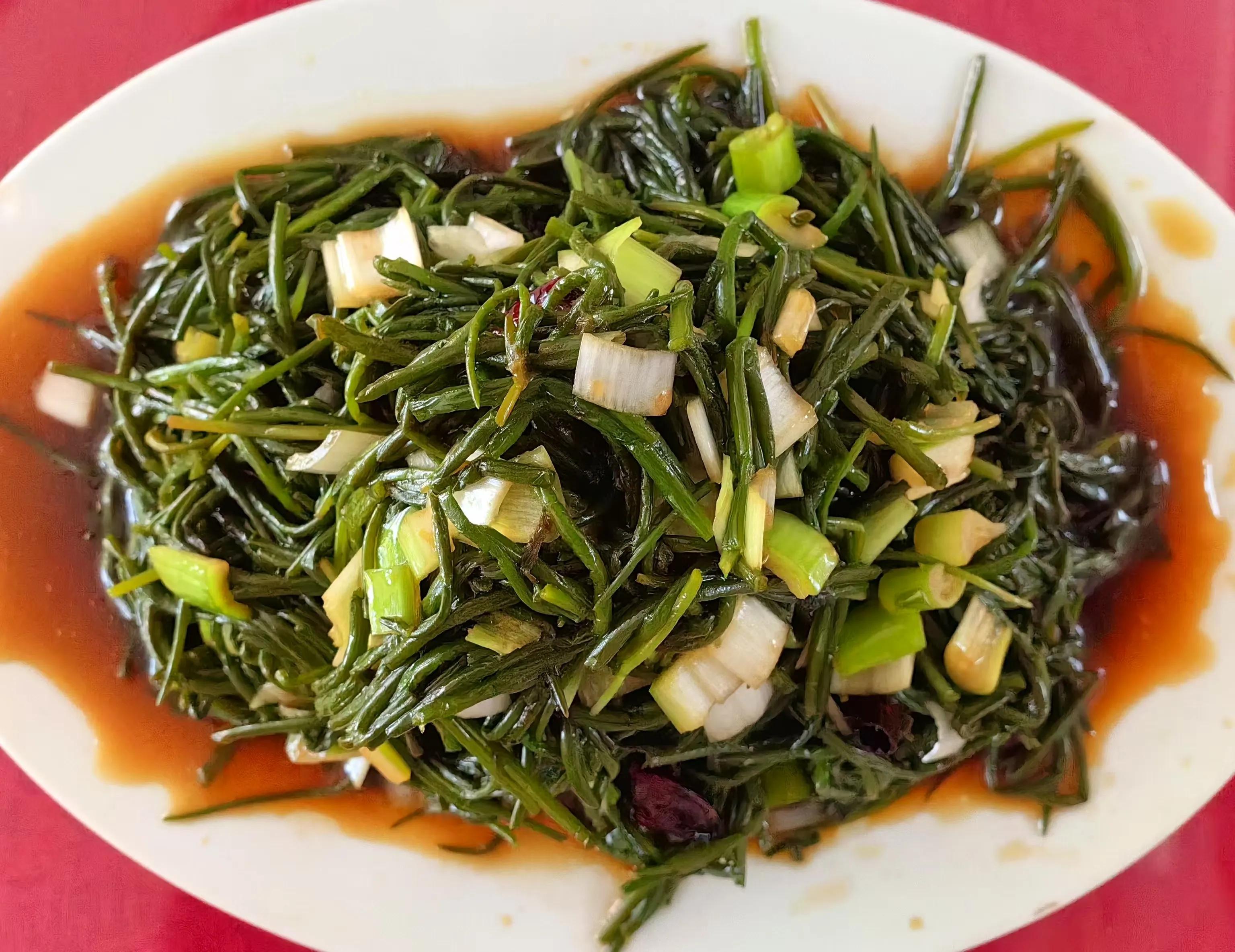 中午王总在他朋友开的饭店请我吃了烤羊排等几道当地特色菜,其中的凉拌沙葱我是第一次吃。它是当地生长的一种植物,既抗热又抗寒,喜湿润也抗干旱。