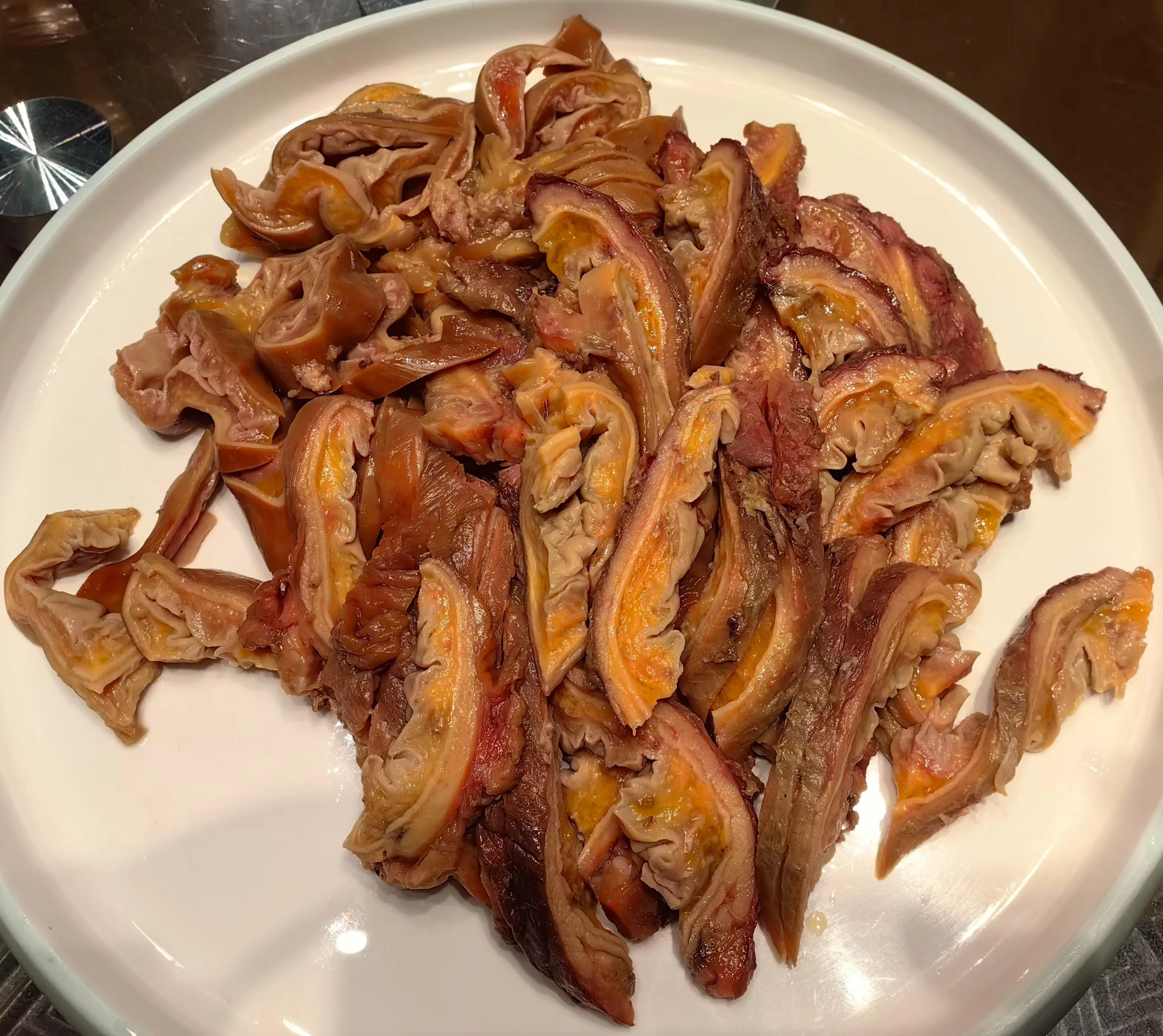 晚餐王总特意在一家马肉店里买了马肠子请我品尝。我之前吃过马肉,但马肠是第一次吃,味道很不错。