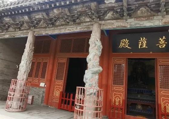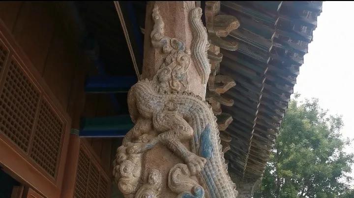 印象最深的是在菩萨殿外庑檐下,竖立着的四根浮雕滚龙石柱,其雕刻工艺极其精美,每根石柱高达4.5米,柱围2.5米,是我见过除山东曲阜孔庙雕龙石柱外第二精美的。