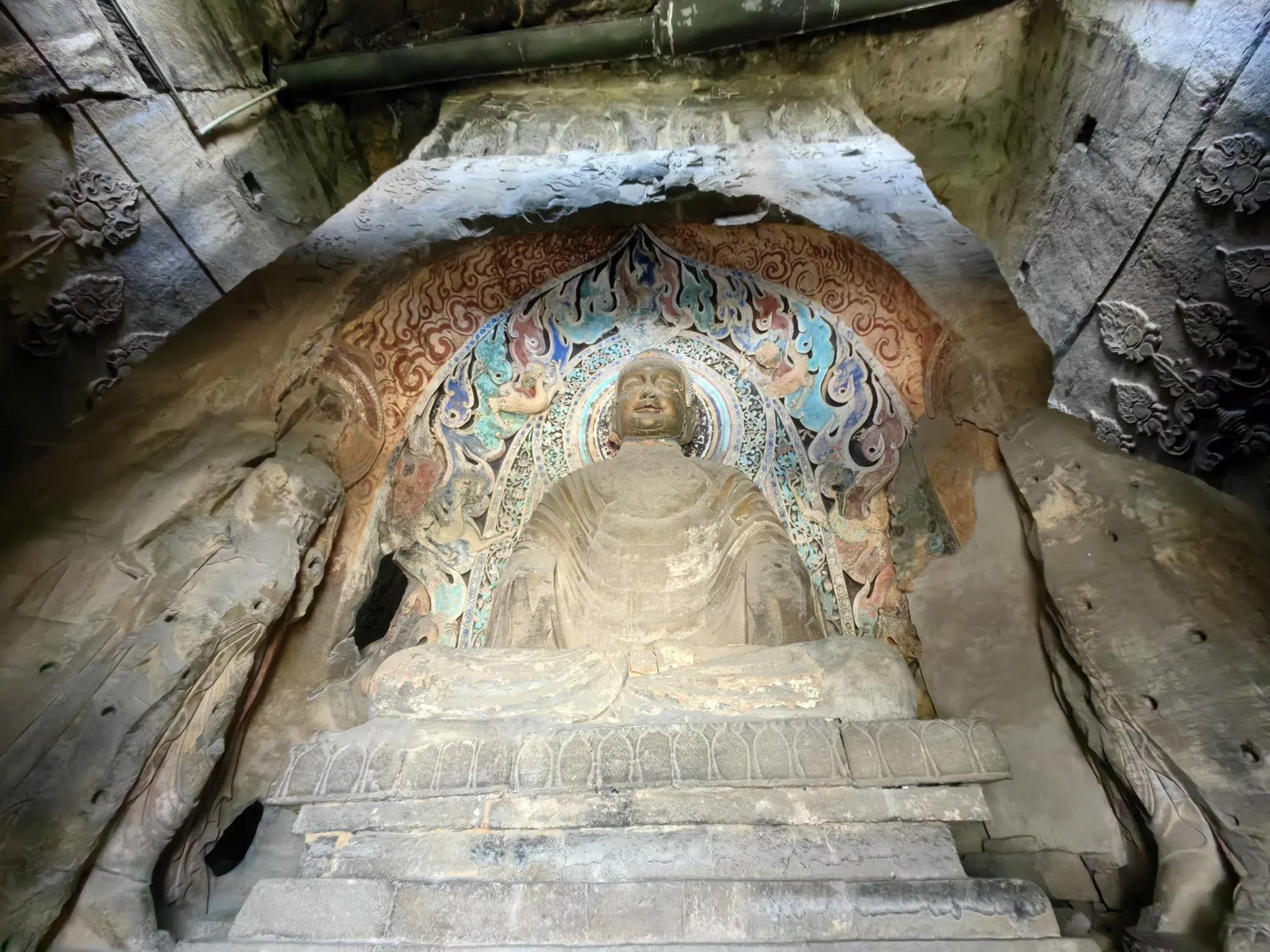 7月21日早晨,在高铁站乘直通大巴车去响堂山石窟游览(在小红书上查到的),之前把大件行李寄存到高铁站的一个面馆内。