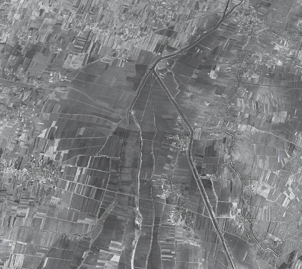这幅是七十年代大陆泽的卫星图像,大陆泽也被称作巨鹿泽、广阿泽,它处于邢台市任泽区、南和区、巨鹿县、隆尧县、宁晋县、平乡县的交界地带,面积大概有1500平方公里,是古代天下九蔽之一。