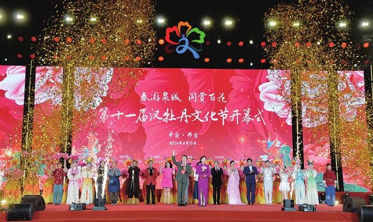 4月15日,“春游泉城 同赏百花”2024邢台市春季旅游宣传推广活动启动仪式暨第十一届汉牡丹文化节开幕式在七里河同心岛举行。千余名专家学者、社会各界代表齐聚太行泉城,共赏国色天香,共谋美好未来。