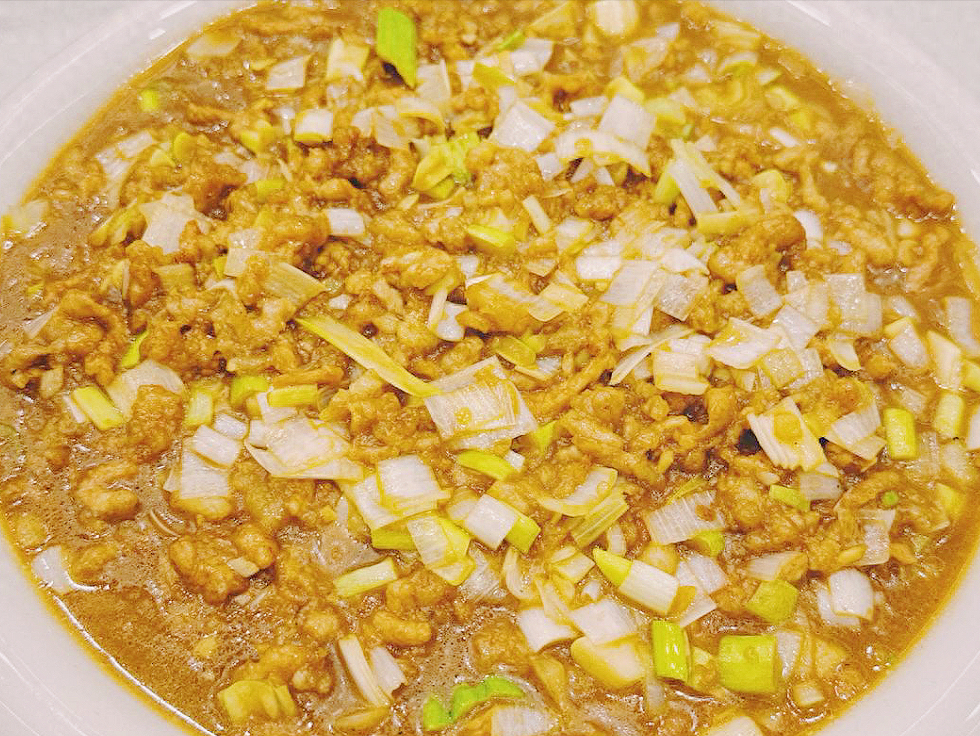 有人调侃挂汁肉就是面条卤子,其实并不一样,挂汁肉要选用肥瘦相间的猪肉切丁,先煸炒变色,再放入蒸好的甜面酱、葱花炒出香味,再倒入高汤,淋入陈醋增香,吃起来非常细腻滑爽,酸香浓郁,配着油饼吃,真是绝了。